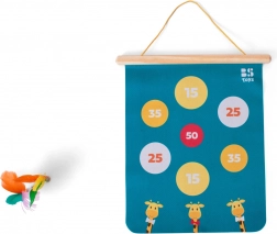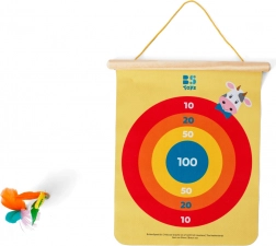 Denne klassiske dartleg i børneudgave giver sikker og fængende konkurrence derhjemme eller i børnehaven. Den dobbeltsidede ophængte skive (40 × 31 cm) tilbyder to spilleflader for flere spilvarianter og længere underholdning. Farverige fjerpile med magnetisk spids fæstner sig let til skiven og er velegnede til små spillere.