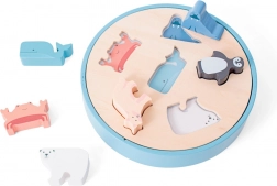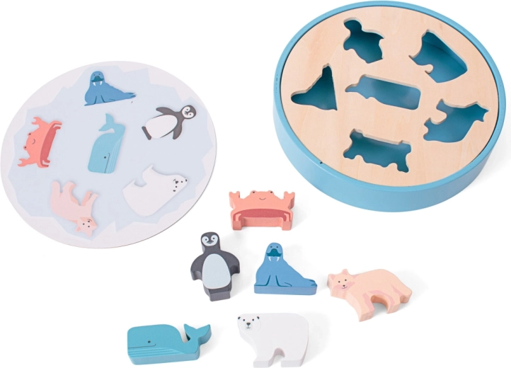 Denne kvalitets putteplade i træ med dyr (sæl, isbjørn, krabbe, pingvin, ræv og spækhugger) er et ideelt første puzzle til små opdagelsesrejsende. Brikkerne er robuste, ligger godt i barnets hånd og er lette at placere takket være tydelige konturer og illustrationer.