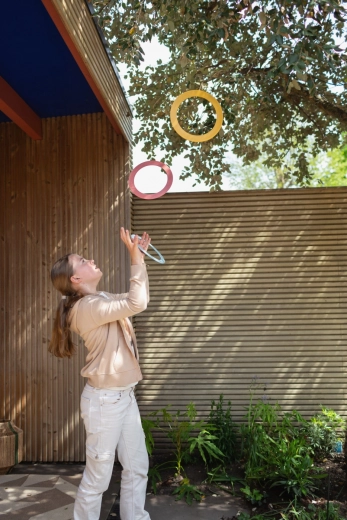 De farverige ringe er holdbare og synlige selv på længere afstand – ideelle til have, park og gymnastiksal.