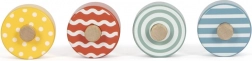 Legetøjet indeholder fire ramper i forskellige farver. Diskene falder aldrig ud, hvilket sikrer sikkerhed under leg.