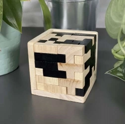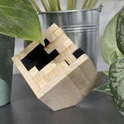 Denne stilfulde træ-hjernevrider i natur- og sort finish er ideel til hjernetræning og som designobjekt på bordet. Sættet indeholder omhyggeligt forarbejdede, non-toksiske brikker i “T”-form, som ved korrekt samling skaber en kompakt farvekombineret terning. Takket være den præcise forarbejdning er samlingen flydende, behagelig og vanedannende.