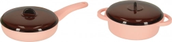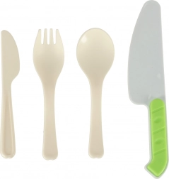 Indeholder et bredt udvalg af tilbehør såsom bestik, tallerkener, pander og meget mere til kreativ leg.