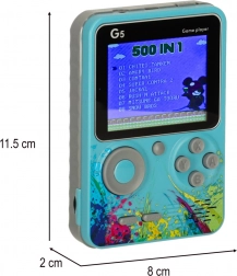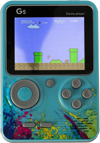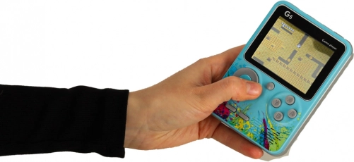 Tag tilbage til de klassiske pixel-eventyr. Denne bærbare retro-konsol tilbyder 500 spil til træning af reaktion og logik, og takket være de kompakte mål 8 × 11,5 × 2 cm passer den i både taske og lomme. 3″ LCD-skærmen sikrer et klart billede, og det blå design glæder både børn og voksne.