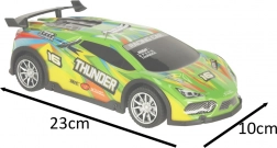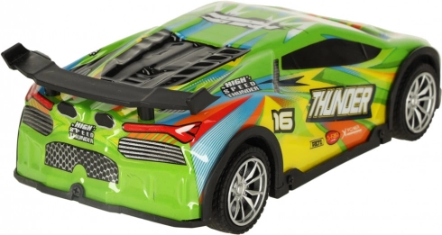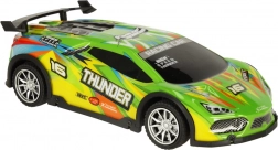 Kør løb med den grønne RC-sportsvogn, som vil begejstre både begyndende piloter og små bilentusiaster. Gummidæk giver godt vejgreb og skåner gulve, så den egner sig til leg både indendørs og på fortovet. LED-lys understreger det dynamiske look og øger attraktionsværdien især i skumringen.
