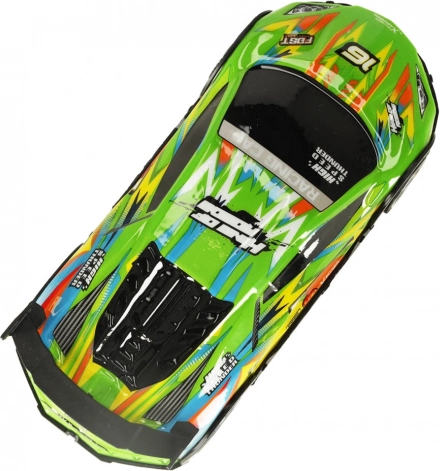 Stilfulde LED-lys fremhæver farten og skaber ægte race-stemning. Den grønne lakering med grafiske elementer får den til at ligne en ægte racerspecial.