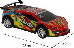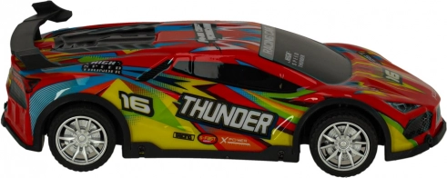 Den røde racerbil THUNDER leverer spændende kørsel fra første sekund. LED-belysning fremhæver action i dæmpet lys, og gummidæk giver godt vejgreb uden at ridse gulvet. Perfekt til leg både indenfor og i gården.