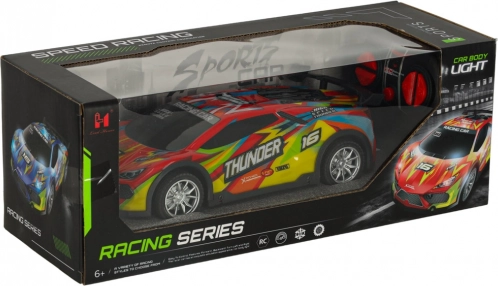 Den stilfulde røde RC-bil THUNDER til børn fra 6 år tilbyder hurtig og sjov kørsel både inde og ude. Takket være LED-lys, gummidæk og et 3,7 V batteri er den ideel til begyndende racerkørere. Den intuitive controller sikrer nem manøvrering, og de kompakte mål 23 × 9,5 × 5 cm passer til enhver barnehånd.