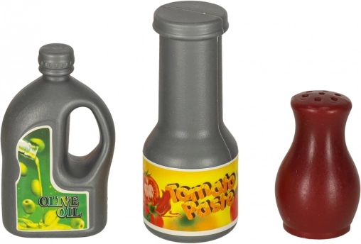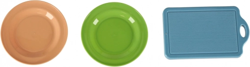 Dette alsidige sæt med madvarer og køkkengrej til børn giver realistisk madlavning i legekøkkenet. De enkelte stykker frugt og grønt kan deles i dele og “skæres” med en sikker plastikkniv på skærebrættet. Metalgryder, pande, si og tallerkener gør legen autentisk.