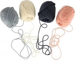 Oplev glæden ved at skabe med et sæt på fire garner i nøje afstemte nuancer (creme, grå, mørkeblå, abrikos). Takket være den behagelige blanding af polyester og akryl fnuldrer det ikke, filtrer mindre og glider godt på både strikkepinde og hæklenål. Farverne kan kombineres flot til kontrastfyldte og harmoniske mønstre.
