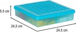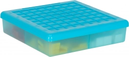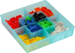 Plastikorganizer med låg og opdelte rum holder brikkerne overskuelige og gør det nemt at rydde op og tage med.