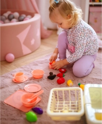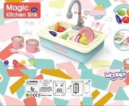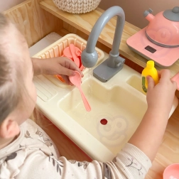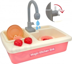 Den lyserøde børne-køkkenvask med ægte vandcirkulation gør oprydning til en leg. Den støtter læring af hjemlige pligter, finmotorisk udvikling og kreativ leg takket være det rige sæt af service, madvarer og tilbehør.