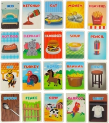 Sættet indeholder kort med engelske tekster, hvilket er en fremragende måde at lære nye gloser og udvikle sprogfærdigheder på.