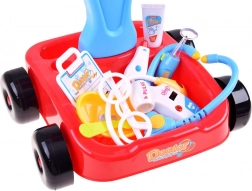 Stabil lægevogn med opbevaringsflader og hjul gør det let for børn at køre rundt med værktøjerne i hele rummet og have alt ved hånden.