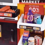 Supermarked for børn er et komplet legesæt, der indeholder mange sjove elementer. Udstyret med konditori, kaffemaskine, køleskab og indkøbsvogn, efterligner dette legesæt et rigtigt supermarked. Kasseapparatet er funktionelt og laver realistiske lyde og lys, hvilket øger spillets autenticitet. For en endnu større oplevelse er der et oplyst køleskab med tågesimulering, ligesom i virkelige frysere.