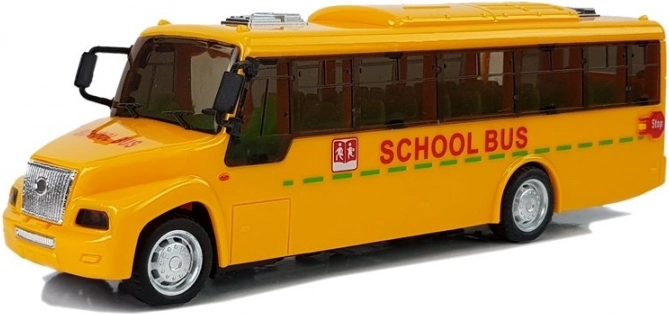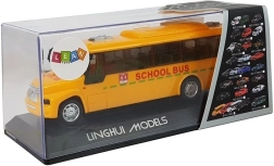 Busens store fordel er den præcise udførelse, som tager højde for selv de mindste detaljer, samt det solide og holdbare materiale, der tåler hyppig leg. Supplerende lys- og lydeffekter. Inde i bussen lyser grønne LED-dioder, og venlig musik spiller. Hele køretøjet er gult med rød skrift Skolebus. Turen til skole med denne bus bliver behagelig, og sjoven vil glæde dine jævnaldrende. En anden fordel er for- og bagdøre, der kan åbnes, så alle passagerer kan stige på.