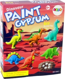 Indeholder alle nødvendige værktøjer inklusive gips, farver, pensler og forme til dinosaurer.