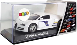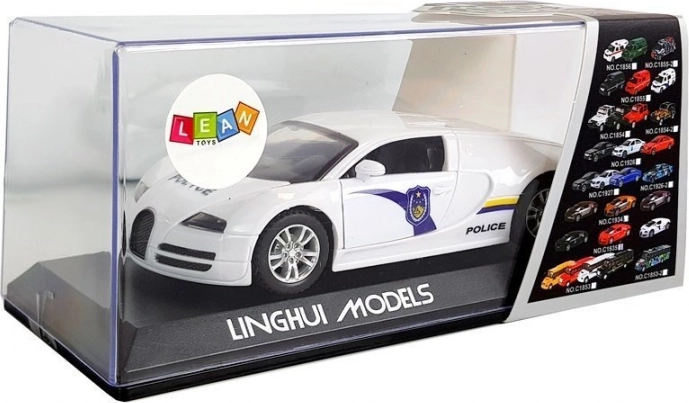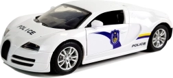 Bliv ordenshåndhæver med denne kompakte politisportsvogn! Takket være pull-back drev, lys- og lydeffekter samt gummidæk byder den på dynamisk og sikker leg. Det hvide design med blå detaljer, POLICE-tryk og tonede ruder giver bilen et autentisk politilook.
