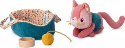 Katten Jeanne fra LILLIPUTIENS er en ekstra blød krammelegetøjsfigur i en hyggelig kurv, der indbyder til omsorgsfuld leg. Børn kan kæle, klæde på, fodre fra skålen og kaste garnnøglet – og dermed træne finmotorikken og udforske de første roller som en “lille omsorgsperson”.