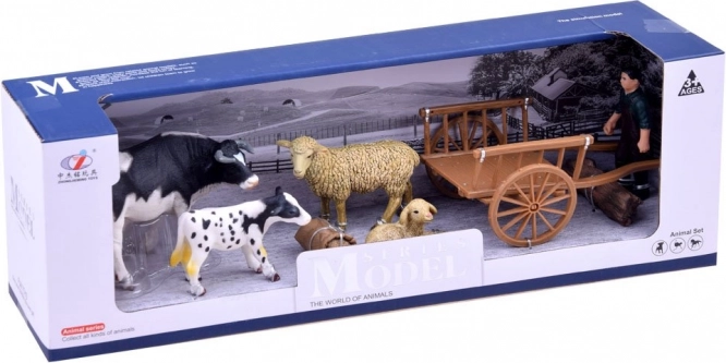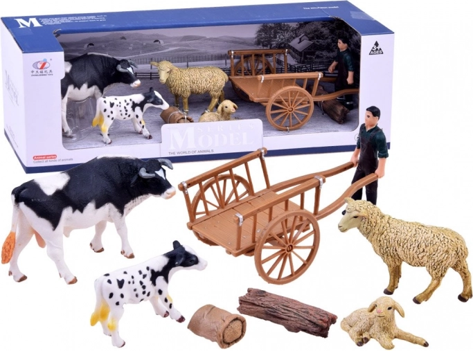 Sæt med bondegårdsfigurer – håndmalede dyr og landmand med tilbehør – B