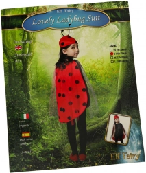 Fantastisk todelt mariehønekostume til børn, bestående af rød kappe med sorte prikker og hue med følehorn. Det er et perfekt valg til forskellige fester og temafester.