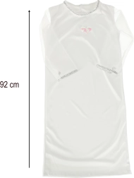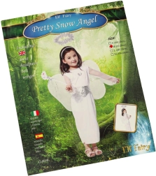 Kostumet indeholder en hvid nederdel, et bælte, en hårbøjle med glorie og englevinger, som fuldender englelooket.