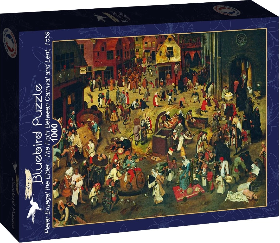 Oplev det imponerende kunstmotiv fra 1559 på et kvalitetspuslespil fra BLUEBIRD med 1000 brikker. Scenen skildrer kontrasten mellem karnevallets munterhed og religiøs fromhed – ideelt for kunstelskere og erfarne puslespilsbyggere. Det færdige billede måler ca. 68,3 × 48 cm og byder på timevis af afslapning og æstetisk nydelse.