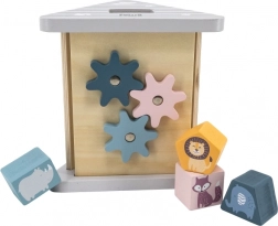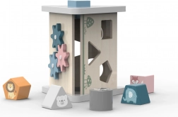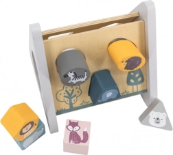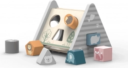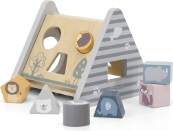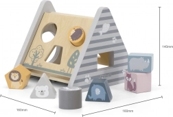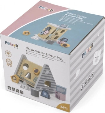 POLARB træsorteren i form af en stabil “A”-pyramide tilbyder forskellige udskæringer til indføring af farvede klodser med dyremotiver. Børn sorterer former og farver, lærer logik og tålmodighed og har masser af sjov ved at finde de rigtige åbninger.