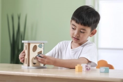 Legetøjet er lavet af kvalitetslakeret træ og malet med ugiftige, sikre farver i moderne polare nuancer. Ideel til hverdagens leg derhjemme og i børnehaver – den robuste konstruktion, glatte kanter og gennemtænkte design fremmer fantasi og kreativitet.