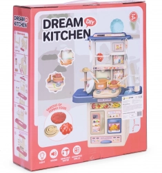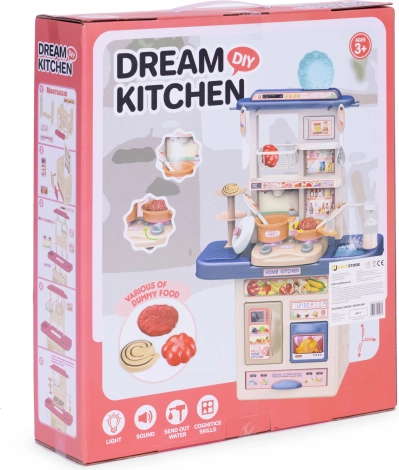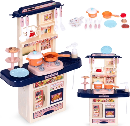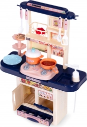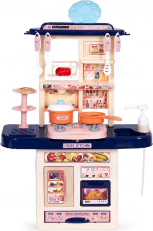 Giv børnene realistisk sjov i deres eget køkken. Når blusene tændes, lyder kogelyde, og kogepladerne lyser med røde LED. Vasken kan fyldes med vand – når beholderen tilsluttes, fungerer hanen, og der løber rigtigt vand.