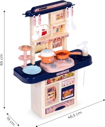 Køkkenet har kompakte mål, så det er nemt at placere på værelset, åbne/lukke-skabe og opbevaringsplads til alt tilbehør. Det er sikkert, uden skarpe kanter, egnet til børn fra 3 år og giver mulighed for, at flere børn kan lege sammen.