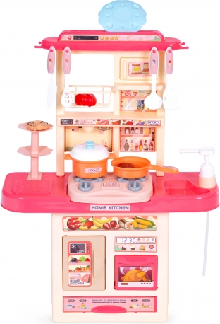 Legekøkken med lyde, LED-lys og vask, 10 tilbehør – Rosa