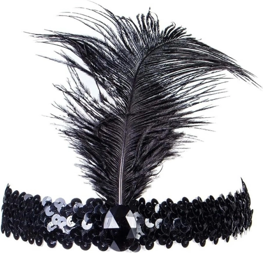 Pandebånd med pailletter og fjer. Den perfekte dekoration til fester af enhver slags. Det komfortable pandebånd tilpasser sig godt til hovedets form. Fjeren er lavet af et blødt og behageligt materiale. Pandebåndet er pyntet med smukke, skinnende pailletter. Pandebåndet må ikke mangle til nogen karnevalsfest.