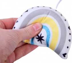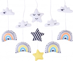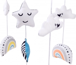 Musik-karrusel med regnbue er et perfekt valg til at berolige og underholde din baby. Plysskyer, en farverig regnbue og stjerner giver visuel stimulering, mens den blide melodi hjælper med at få dit barn til at sove.