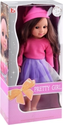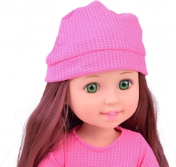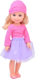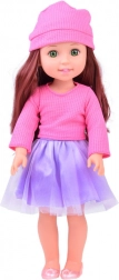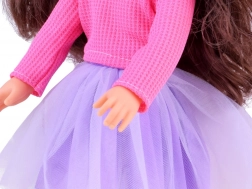 Den elegante dukke, 36 cm høj, er en ideel ledsager for små piger. Takket være det lange, brune, bølgede hår, som kan børstes og styles, styrker den børns sans for mode og udvikler færdigheder i hårpleje. Hun er klædt i en stilfuld pink bluse og en lilla nederdel, og sammen med pink sko og hue tilbyder hun et elegant look. Bevægelige arme og ben gør det nemt at placere dukken i forskellige positioner, hvilket understøtter kreativ og fantasifuld leg.