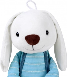 Denne bløde plysbamse vil glæde ethvert barn. Kaninen er klædt i selebukser og en stribet langærmet trøje, og den virker både venlig og sikker. Takket være det kvalitetsrige og behagelige materiale er den ideel til at kramme og til daglig leg.