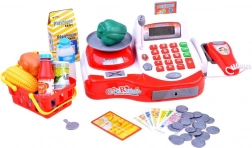 Stilfuldt børnekasseapparat med funktionsdygtig lommeregner, scanner, vægt og mikrofon, som giver realistisk butikleg. Sættet inkluderer lege-madvarer, kurv, sedler og mønter i euro samt betalingskort. Et godt valg til at udvikle tællefærdigheder, finansiel forståelse og kommunikative evner.