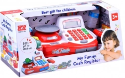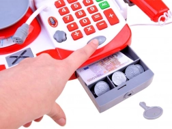- Scanner med lys og lyd, funktionsdygtig lommeregner, mikrofon, åbnbar og låsbar pengeskuffe