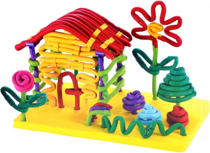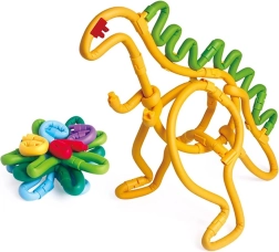 Forbindere, hjul og base gør det muligt at bygge 3D-modeller – fra små huse og blomster til søde dinosaurer. Konstruktionerne holder formen godt og kan omformes igen.