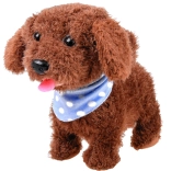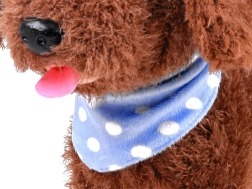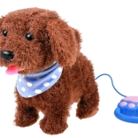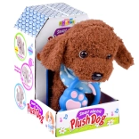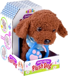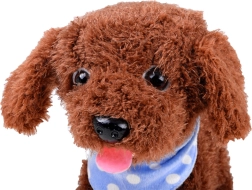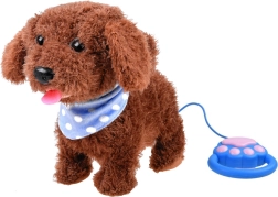 Denne søde plysbamsehund med snor er et ideelt valg for børn, der drømmer om deres eget kæledyr. Når batterierne er sat i og kontakten tændt, reagerer den på berøring og kærtegn – den giver glade gøelyde, piver og vifter ivrigt med halen. Med knappen på snoren kan du nemt starte gang og lyde.