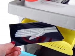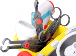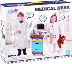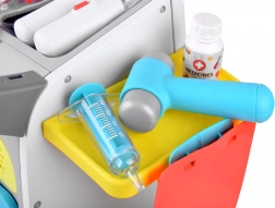 Sættet udvikler finmotorik, fantasi og sociale færdigheder ved leg med venner. Den mobile konstruktion gør det muligt at flytte “klinikken” rundt i værelset og have alle lægeredskaber lige ved hånden.