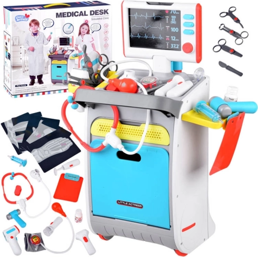 Børnenes lægevogn er et veludstyret sæt til små medicinstuderende. Med realistiske funktioner som EKG/RTG-monitor med lyd, højdemåler og plads til instrumenter går børnene nemt ind i rollen som læge. Kvalitetsplast og nem håndtering takket være hjulene sikrer mange timers sikker og kreativ underholdning.
