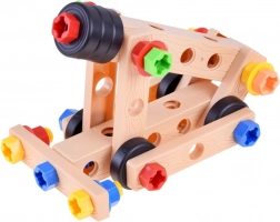 Dette kreative byggesæt er et ideelt valg for små konstruktører. Takket være det gennemtænkte system af huller i de “trælignende” plastlister og de farvede skruer kan de enkelte dele nemt forbindes og danne stabile modeller. Under legen træner børn øje–hånd-koordination, fingerfærdighed og tålmodighed.