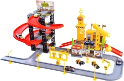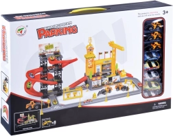 Omfattende børnesæt til at bygge en parkeringsplads med byggeplads tilbyder masser af kreativ leg. Farvede plastdele, 4 parkeringsniveauer, lange nedkørsler, tankstation og skilte suppleres af en tilsluttet byggezone med kran og maskiner. Inkluderer 8 køretøjer og rigt tilbehør til realistisk leg.