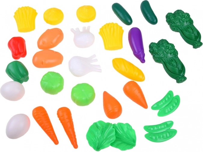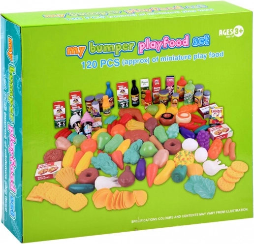 Et farverigt sæt lege-mad med ca. 120 dele forvandler enhver børnekøkken eller butik til et sted fyldt med fantasi. Du finder frugt, grøntsager, bagværk, kød, mejeriprodukter, drikkevarer og slik. De lette og robuste dele er ideelle til rolleleg, og de udvikler kreativitet, kommunikation og finmotorik. Legetøjet er ikke beregnet til indtagelse.