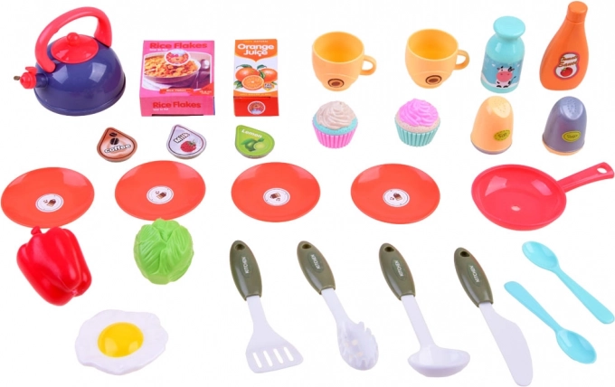 Børnekøkken med køleskab, ovn og vask – sæt med 42 dele