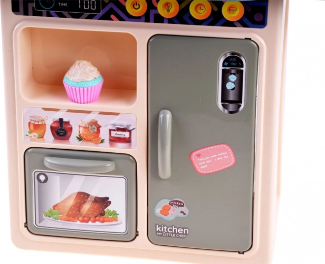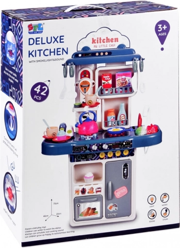 Dette multifunktionelle plastkøkken er designet med fokus på detaljer og sikker leg. Takket være realistiske funktioner som vandcirkulation i vasken, lys- og lydeffekter på kogepladen (boblen, kogning med 3 lydstyrkeniveauer) og damp fra blusset, giver det børn en autentisk madlavningsoplevelse.