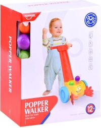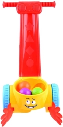Den glade gåvogn med boldfanger støtter de første skridt og udvikler motorikken. Under bevægelse afspilles sjove lyde og musik, og de farvede bolde bliver samlet op og hopper, mens vognen kører. Let og holdbar plastkonstruktion, indbydende farver og let at gribe sikrer timevis af sikker leg.