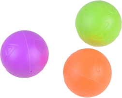 Legetøjet er lavet af kvalitetsplast i attraktive farver. Takket være det store håndtag er det let at styre selv for små børn. Sættet indeholder tre plastbolde, som kan indsættes, tages ud og fanges igen – ideelt til aktiv og sjov leg derhjemme og på glatte overflader.