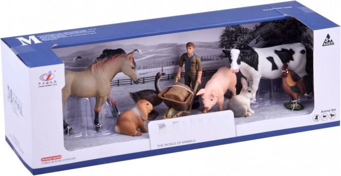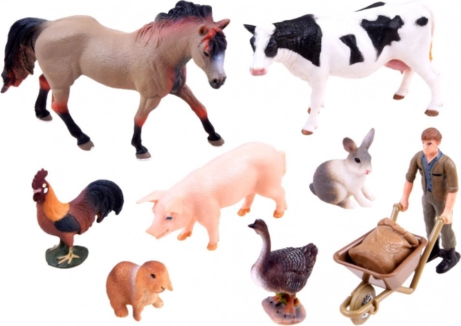 Pakkeindhold: ko, hest, hane, pattegris, hareunge, kanin, gås og landmand med trillebør. Hver figur er håndmalet og klar til at skabe utallige scener og historier.