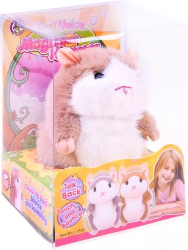 Sød talende plyshamster gentager alt, hvad du siger, mens den vugger muntert. Den er blød at røre ved, dejligt pelsede og perfekt som gave til børn og dyreelskere.